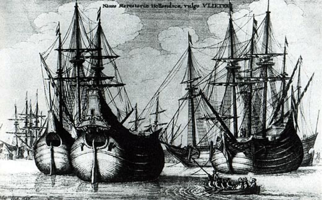 Hollandse fluitschepen in de 17e eeuw (Wenzel Hollar, 1647).
